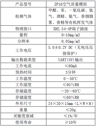 空气质量模组采用先进的片式厚膜半导体气敏元件、该气敏元件对甲醛、苯、一氧化碳、氨气、氢气、酒精、香烟烟雾、香精等有机挥发气体具有极高的灵敏度。模组经过老化、调试、标定、校准,具有良好的一致性以及极高的灵敏度。